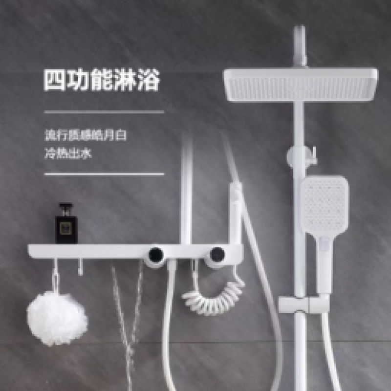 钢琴键四功能淋雨置物面板带挂钩旋钮式出水